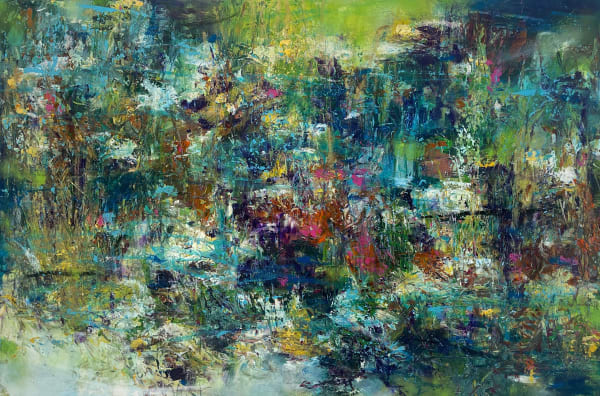 Die impressionistischen Landschaften die sich voll sinnlicher Farbe, Rhythmus und Taktilität auf Claudias Leinwänden entfalten, versetzen den Betrachter in einen Raum, der alle Sinne einlädt, an der Symphonie eines impulsiven, intuitiven und doch zarten Pinsels teilzunehmen, der mit dem Ausdruck der Phantasie spielt. Schichten von Acryl, Ölfarbe, Sprühfarbe, reinen Pigmenten und Pastellkreiden vereinen sich im Blickfeld des Betrachters und kultivieren einen Raum der Meditation - einen Moment des Innehaltens in einer schnelllebigen Welt, wo Leidenschaft den Betrachter zu den organischen Formen der Natur führt, um ihn dann in den Raum des Surrealen zu leiten, der vorübergehend alle Grenzen der Sinne unterbricht und alle Linien zwischen Innerlichkeit und Äußerlichkeit verwischt.